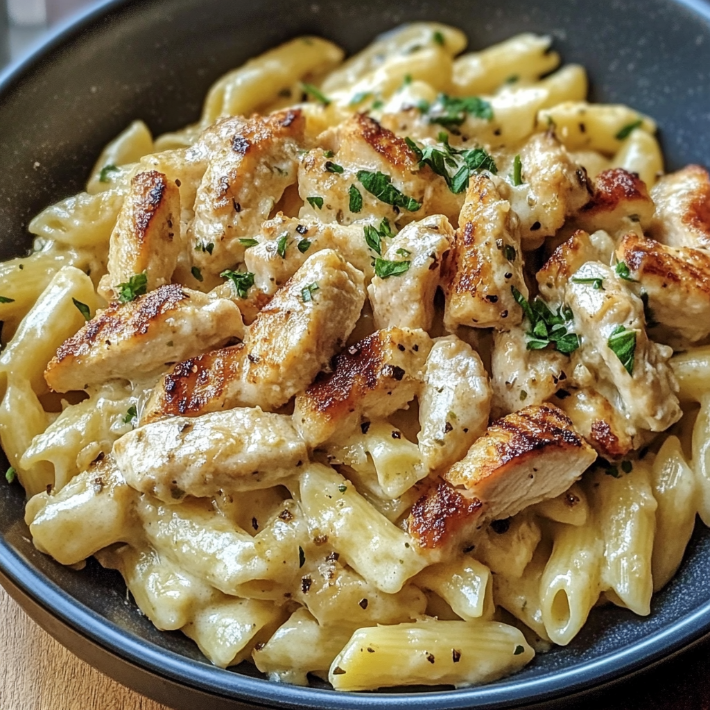 This pasta dish is not only a flavor bomb, but it also has some nutritional benefits! Chicken is an excellent source of lean protein, which is essential for your body’s tissue repair and muscle growth. Plus, you’re getting a good dose of garlic, known for its anti-inflammatory and immune-boosting properties. If you’re concerned about calories, the creamy sauce can be made healthier by using a lighter cream or Greek yogurt instead, making it a little less indulgent yet still incredibly tasty!