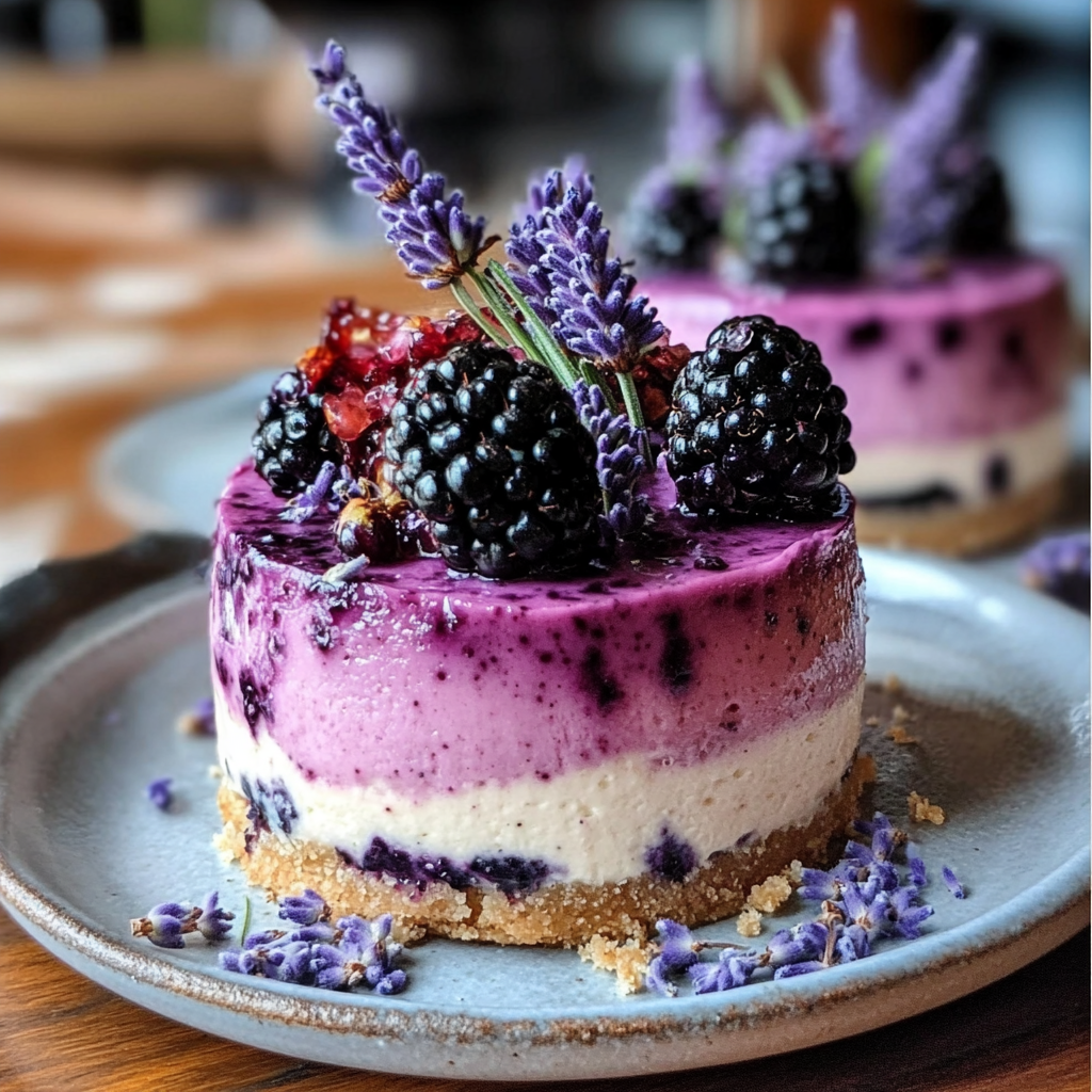 This cheesecake is infused with blackberries and lavender, both of which bring more than just delightful flavors to the table. Blackberries are packed with vitamins, antioxidants, and fiber, making them great for your health. They can support your immune system and improve your digestion—bonus points for deliciousness and health benefits! Meanwhile, lavender is known for its calming properties, which can help reduce stress. So enjoy this dessert, knowing that it’s a little treat for your taste buds and your well-being!