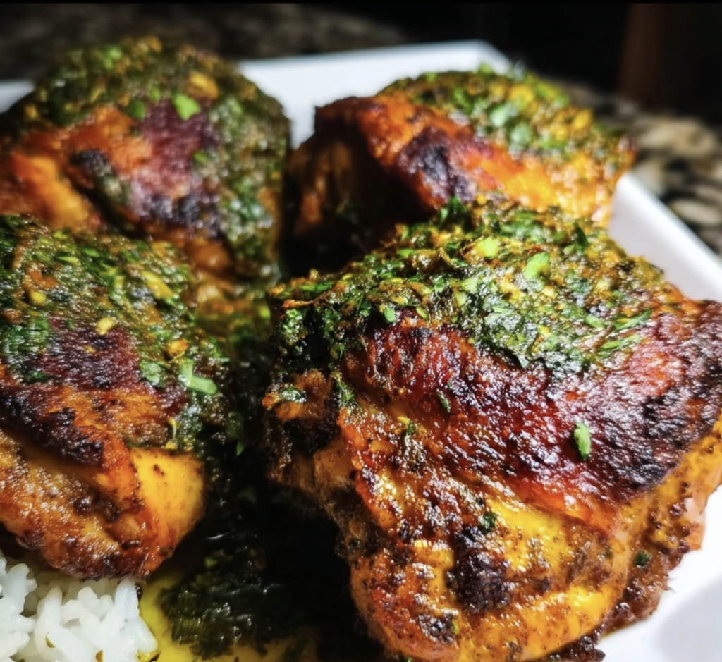 - Pat the chicken thighs dry with paper towels. Rub the marinade evenly over the chicken thighs, ensuring they are well-coated. Allow to marinate for at least 30 minutes (or up to overnight in the refrigerator for more flavor).