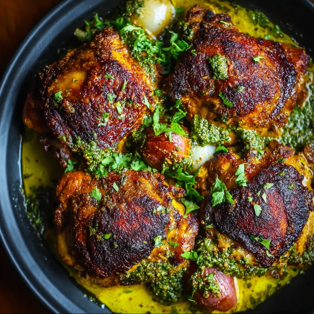 - Once cooked, remove from the oven and let it rest for a few minutes. Garnish with freshly chopped cilantro and serve hot accompanied by couscous or crusty bread to soak up the flavorful sauce. Optionally, add a dollop of harissa paste for extra heat. Enjoy your Moroccan-spiced chicken thighs!